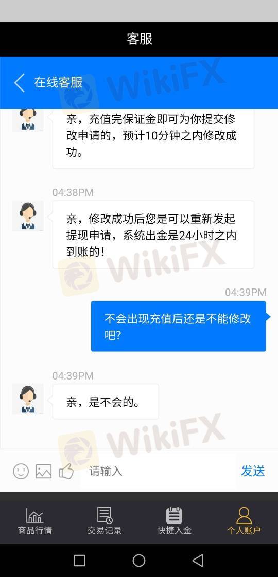 5月7日在lG平台前后充值了140000元人民币,5月8号晚提现802840元,第二天一直不到帐,登软件上看说是银行卡信息错误,客服叫充百分之二十保证金160568元才能修改,不敢充呀,我要曝光!