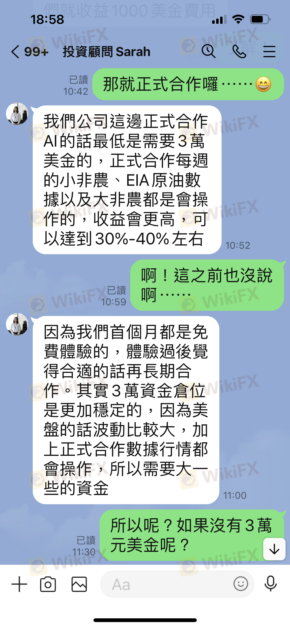 這家公司是詐騙集團,一開始不斷推銷AI智能操作有多麼的穩健,可以先體驗,等一個月後就要求要增加資金到3萬美金才能加入什麼AI正式版。我不能增加資金,她說就只能繼續用體驗版AI, 結果沒兩天就突然加大手數,也沒設止損就讓它直接爆倉。事情發生後,就馬上將我退出群組,斷開帳戶,之後,還說他們公司提出解決方案,就是叫我繼續注入資金,他們願意再代為操作、免收服務費,直到賺回本金。這是套路,打算騙完再騙的節奏⋯⋯